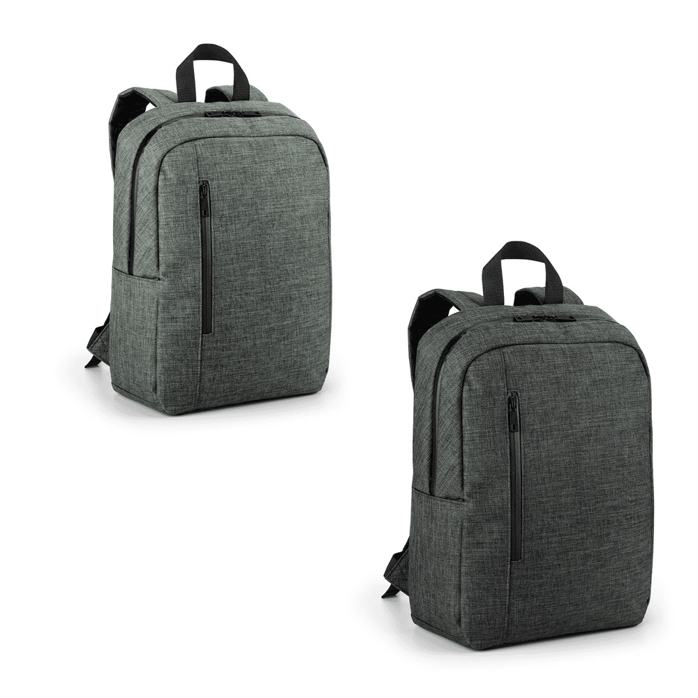 Mochila para notebook em 600D de alta densidade. Compartimento principal forrado, com 2 divisórias almofadadas para computador até 14'' e tablet até 9.7''. A mochila tem 1 bolso frontal e 1 bolso lateral. Parte posterior e alças almofadadas. Capacidade até 12 L. 310 x 400 x 110 mm