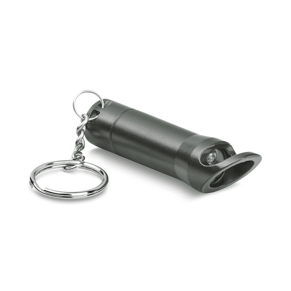 Lanterna em metal com 3 LEDs, abridor de garrafas e chaveiro. Incluso 3 pilhas LR44. ø18 x 72 mm