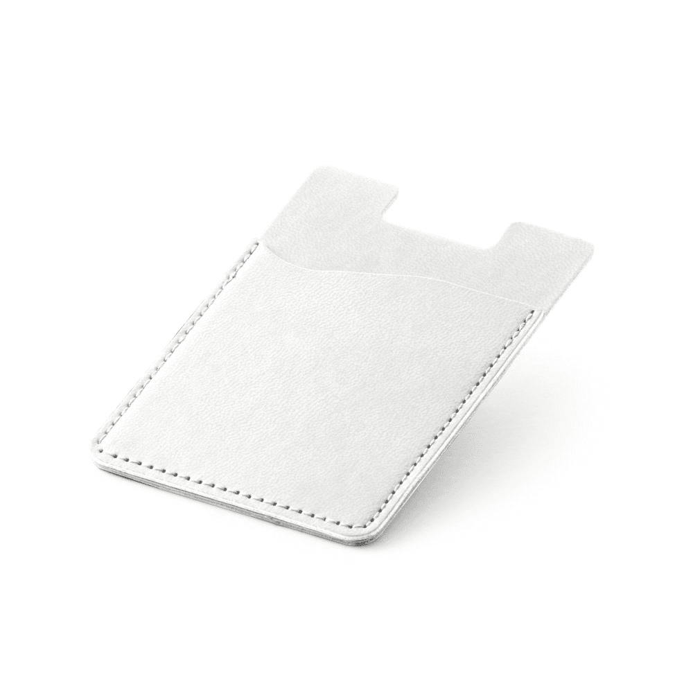 Porta-cartões para celular em PU com bloqueio de RFID, capacidade para 1 cartão e autocolante no verso. 92 x 62 x 3 mm