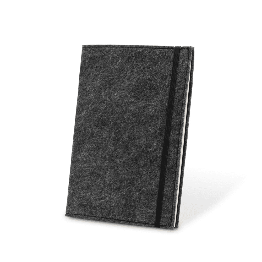 Modelo: 93636 BALDWIN. Caderno A5 com capa em feltro 100% reciclado, com 160 páginas pautadas recicladas