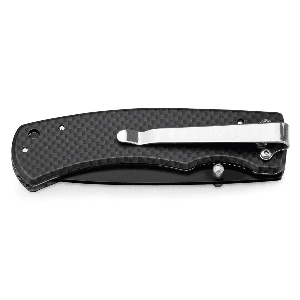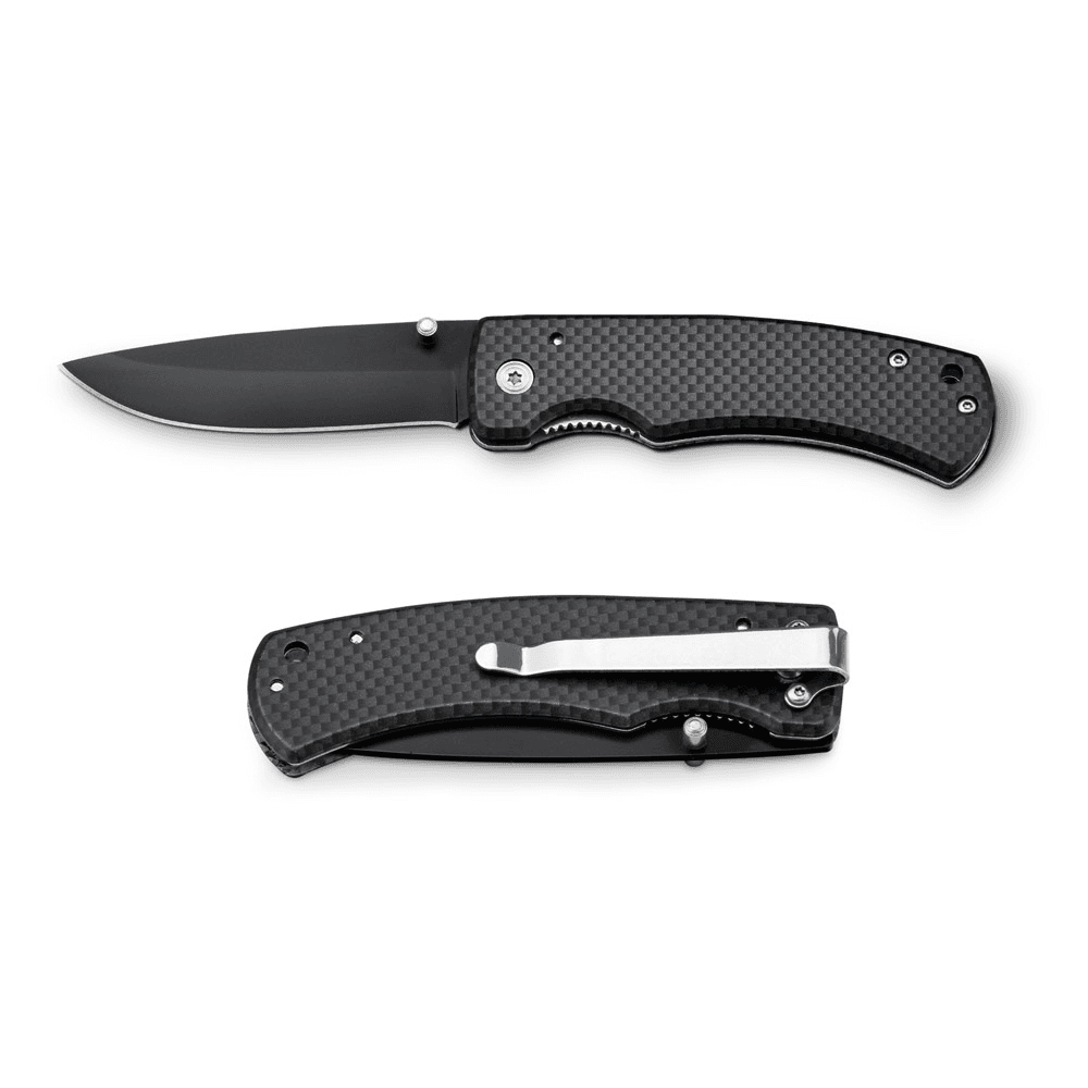 Canivete em aço inox e metal com fecho de segurança e clipe. Fornecido em caixa presente. 97 x 15 x 29 mm | Caixa: 110 x 37 x 20 mm