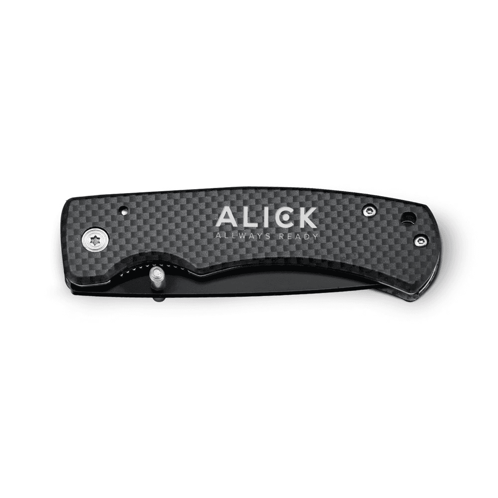 94035 ALICK. Canivete em aço inox e metal com fecho de segurança - Brindes Caxias