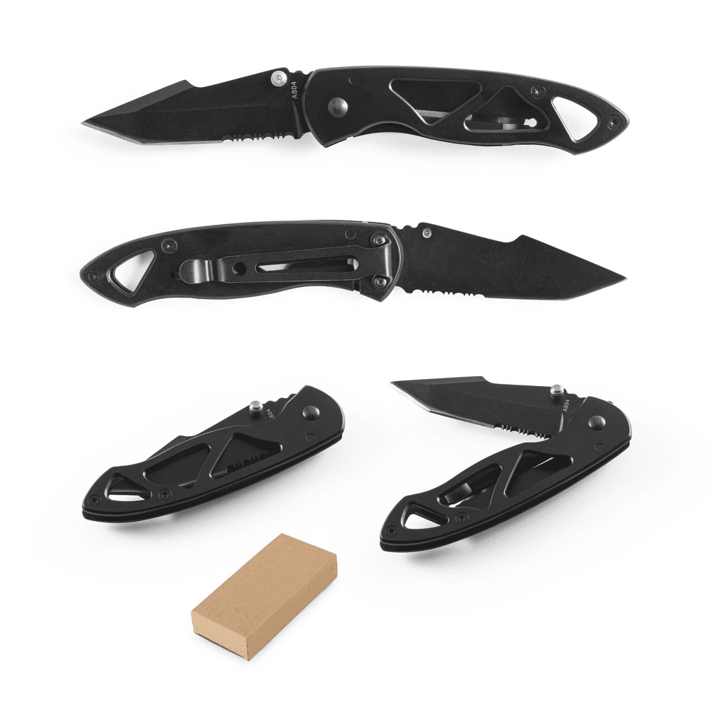 94358 YAGO. Canivete em aço inox e metal com fecho de segurança e clipe