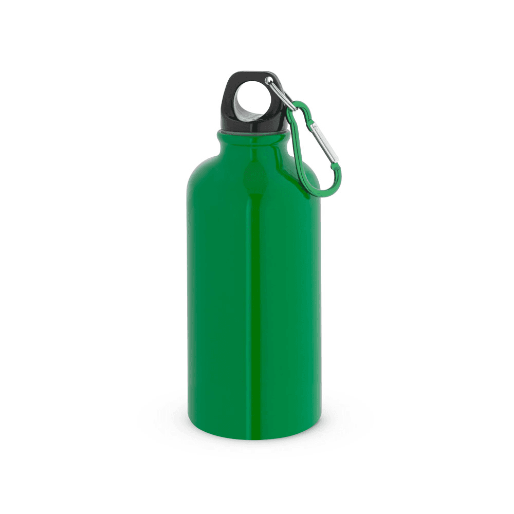 Modelo: 94378 KARSTEN M. Squeeze esportiva em aço inox, de parede simples e acabamento brilhante com mosquetão 560 mL
