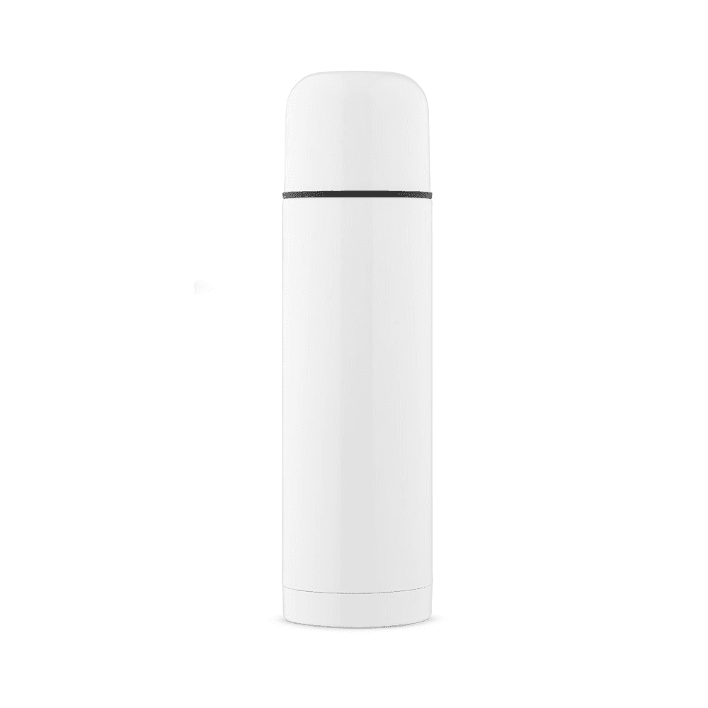 Garrafa em aço inox de parede dupla térmica, isolada a vácuo. Tampa interior com sistema de botão abre e fecha dando maior isolamento e segurança contra vazamentos. O design da tampa vira um copo para que possa consumir a sua bebida preferida. Capacidade até 500 mL. Preserva as bebidas quentes por 12h e frias por 24h. Fornecida em caixa branca. Certificação EU Food Grade. ø70 x 245 mm