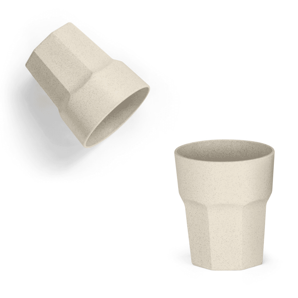 Copo em fibra de arroz (60%) e PP (40%) com acabamento mate. Capacidade até 400 mL. Certificação EU Food Grade. ø88 x 102 mm