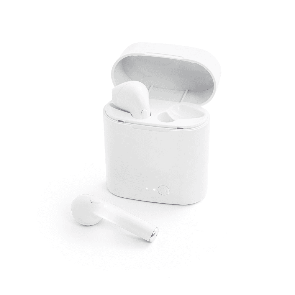 Fone de ouvido True Wireless em ABS com microfone e caixa de carregamento de 250 mAh. Possui transmissão sem fios BT v5.1, autonomia, aproximada, de 1h50, frequência 20Hz-20KHz, 98 dB e impedância de 32Ω. Cada fone tem um botão multifunções e a caixa tem uma porta micro USB para ser carregada. Fornecido em caixa presente. Auricular: 47 x 19 x 8 mm | Caixa: 55 x 64 x 26 mm
