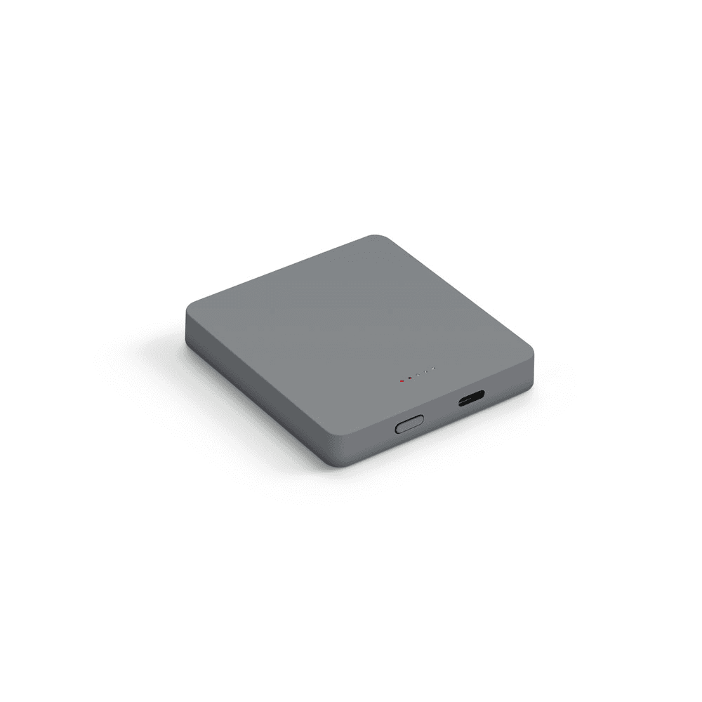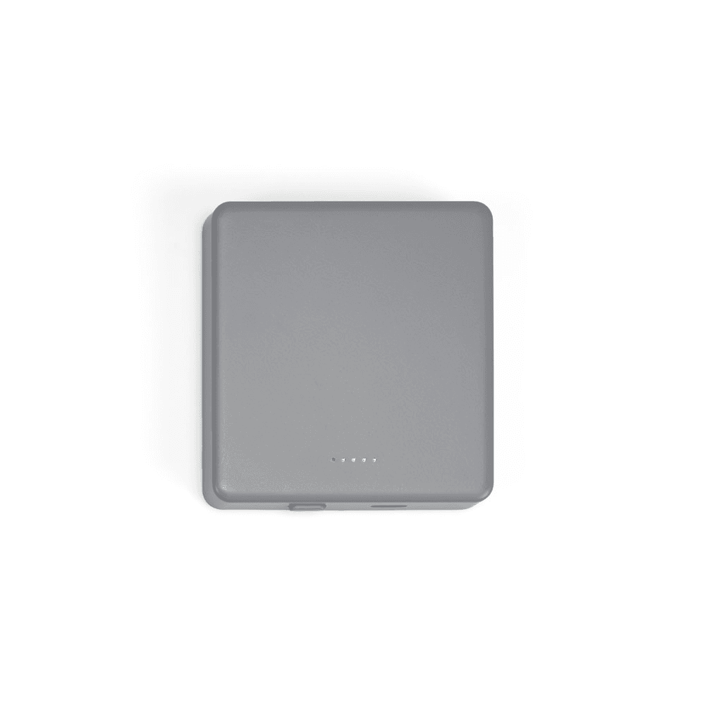 Bateria portátil de carregamento rápido em ABS 100% reciclado com acabamento em mate. A bateria leve em lítio e com design slim, tem uma capacidade de 5.000 mAh e tempo de vida ≥ 300 ciclos. Esta bateria portátil torna-se muito prática para o dia a dia uma vez que permite, através do seu magnetismo, prender atrás dos smartphones ou capas com este sistema. Possui entrada/saída USB-C e potência máxima de 15W para carregamento rápido sem fios. Compatível com smartphones com tecnologia de carregamento sem fios. Incluso cabo USB-C para carregamento rápido. Fornecido em caixa presente de papel kraft reciclado. 74 x 69 x 15 mm | Caixa: 77 x 72 x 18 mm