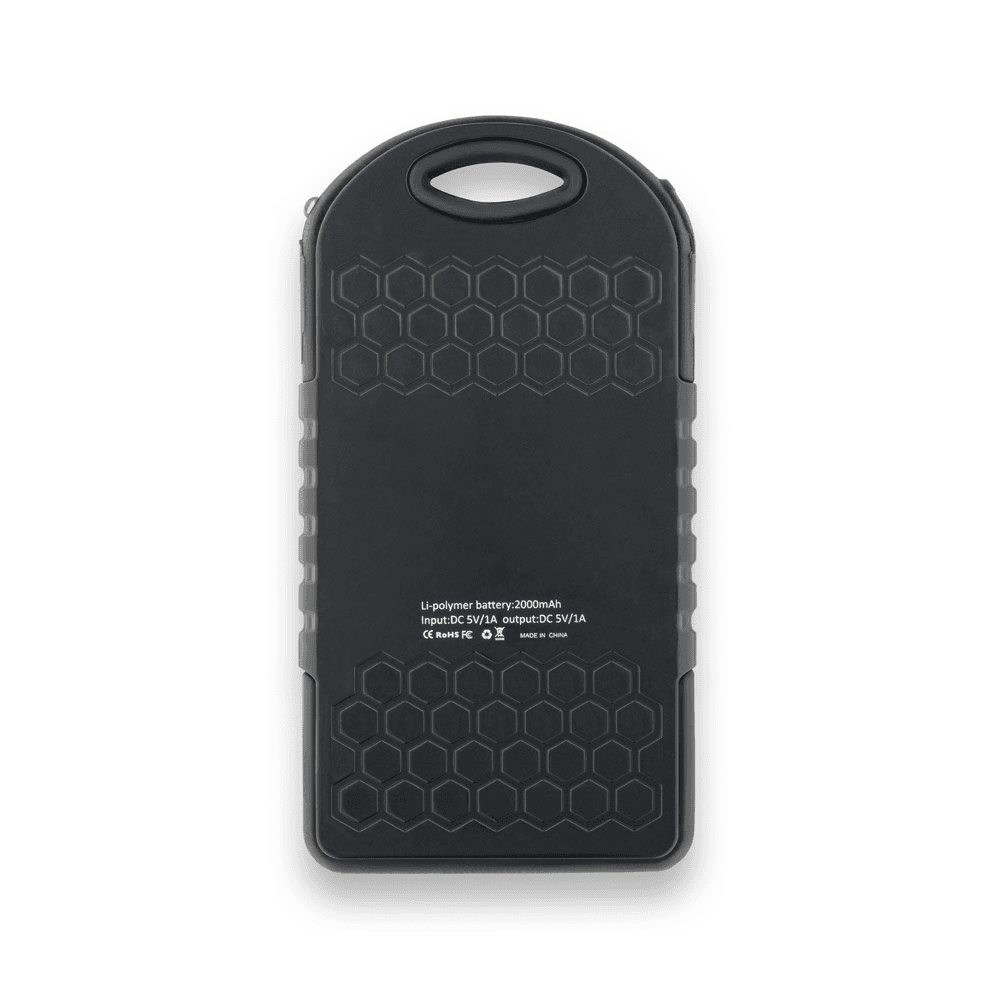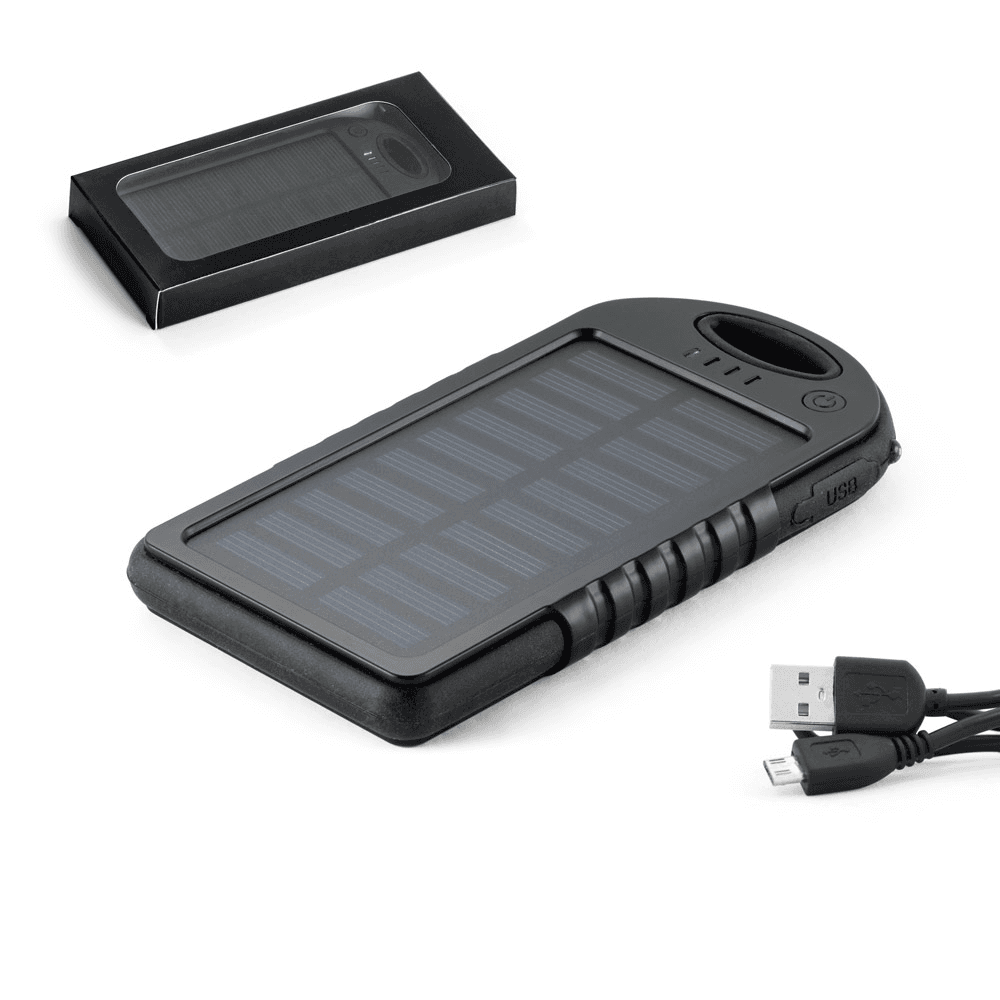 Modelo: 97371 DAY. Bateria portátil solar em ABS com painel solar, LED e capacidade de 2.000 mAh