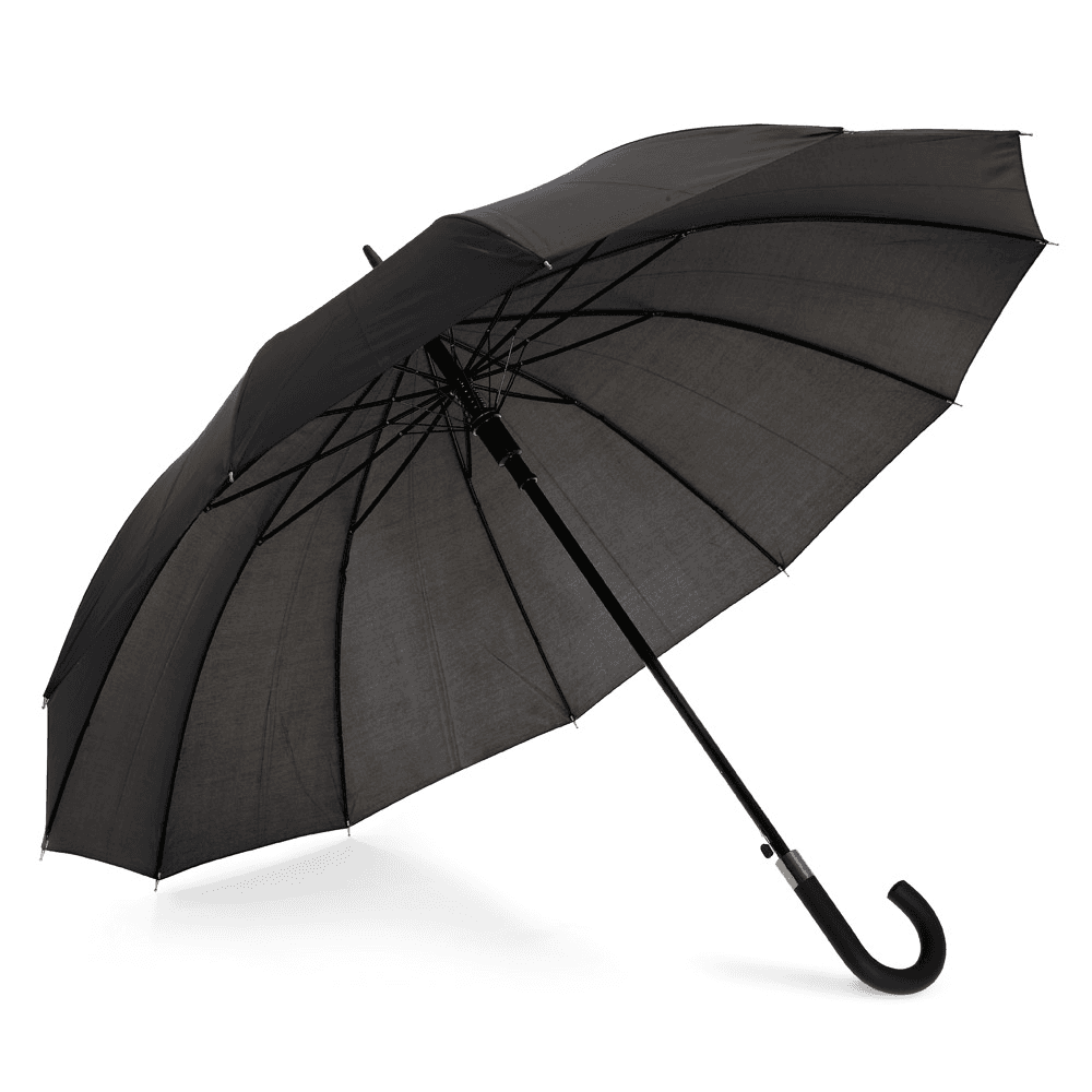 Guarda-chuva de 12 varetas em poliéster 190T, com pega revestida em borracha. O guarda-chuva tem abertura automática. ø1100 x 900 mm