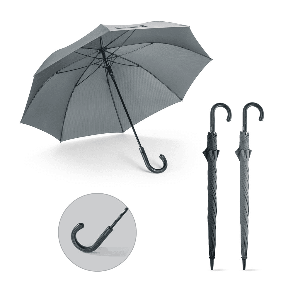 Guarda-chuva em poliéster pongee 190T com varetas em fibra de vidro e pega em c. sintético. Guarda-chuva à prova de vento com abertura automática. ø1175 x 925 mm