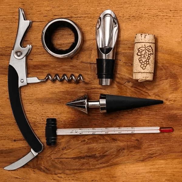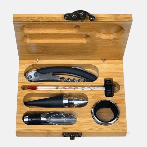 Acessórios Para Vinho Com Estojo Em Bambu - 6 Pçs PV-00843