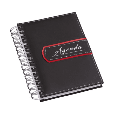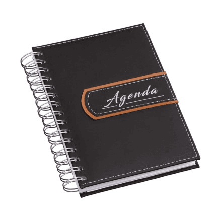 Agenda Wire-o Luxo Preta - Miolo Papel Off-set 63g - 2x2 cores com Mapa 4x4 Cores -344 páginas - Índice Telefônico - Planejamento - Formato da Agenda 160x200mm.