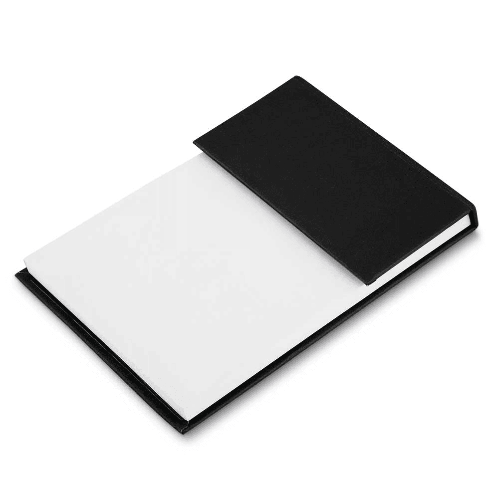 Mini caderno com capa dura, sticky notes com 25 folhas em 06 cores, miolo 80 folhas sem pauta na cor branca.