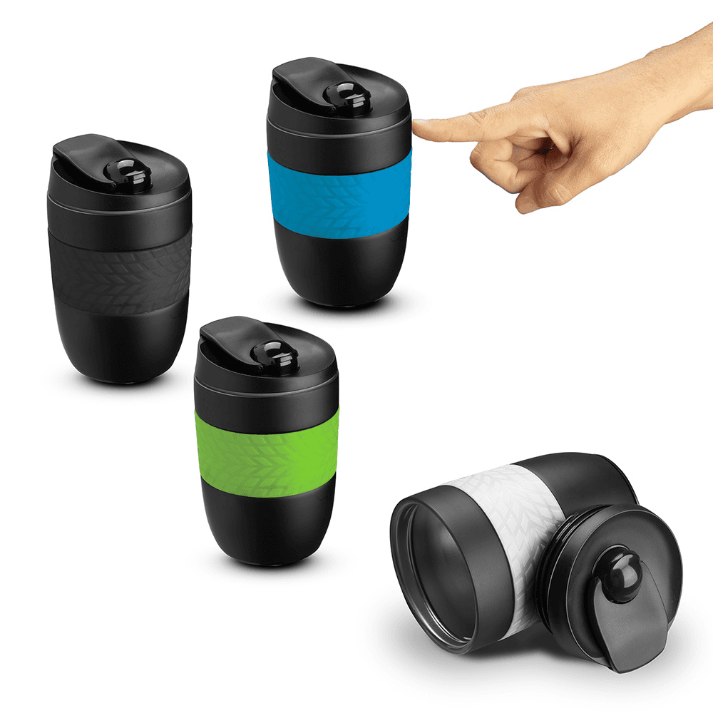 Copo antiqueda em aço inox parede dupla de 260ml, conserva temperatura quente ou fria, pegador em silicone e bico com tampa. Na parte inferior da caneca existe uma ventosa que por sucção previne possiveis quedas causadas por batidas, choques e colisões.