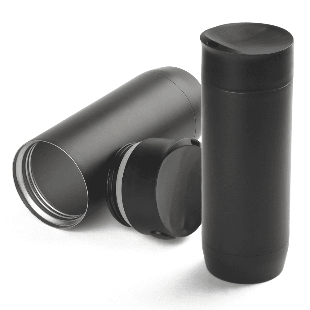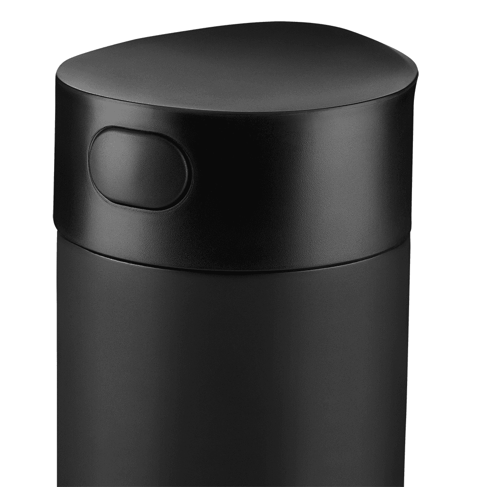 Garrafa em aço inox com parede dupla isolada a vácuo com capacidadde de até 450ml. Conserva temperatura quente ou fria, tampa com rosca e anel de silicone para vedação.