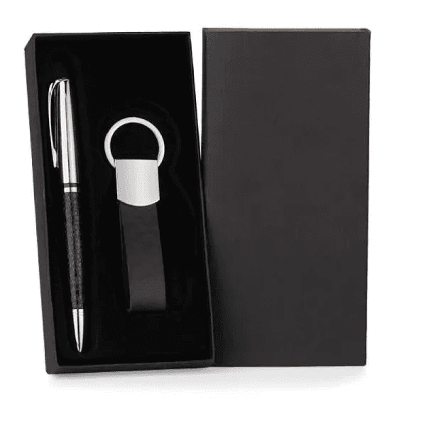 Caneta E Chaveiro Em Metal E Material Sintético Preto CC-31281 - Brindes Caxias