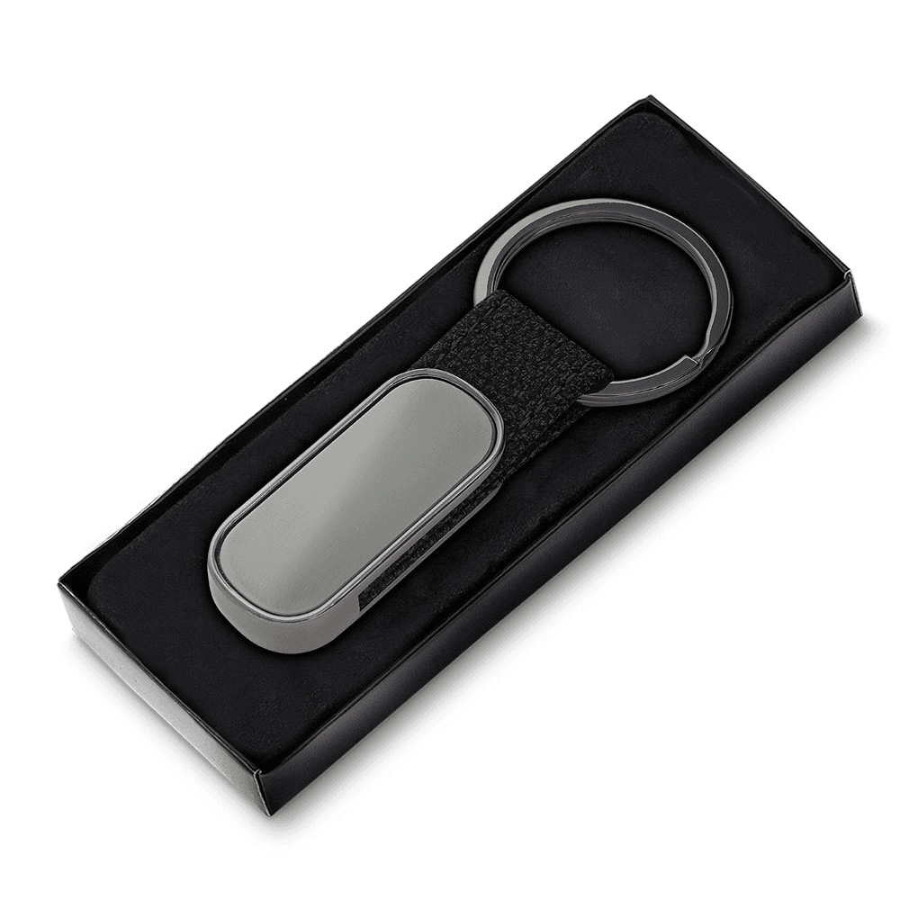 Chaveiro produzido em liga de zinco, ferro e PU.