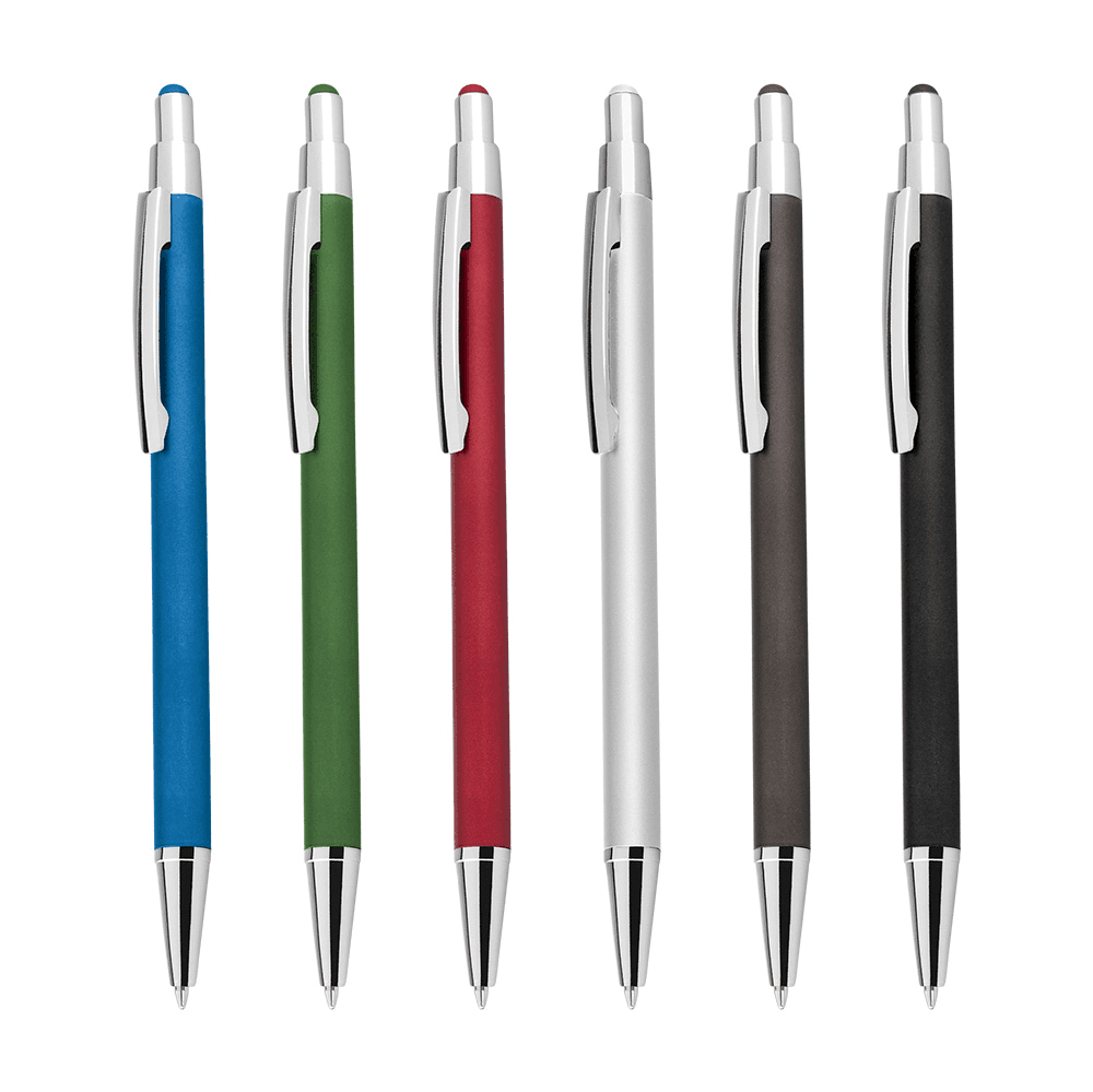 Caneta esferográfica em metal com ponta touch escrita em azul