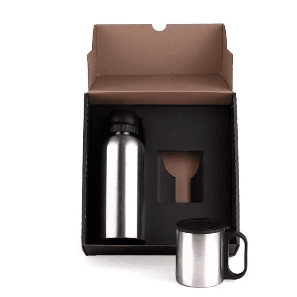 Modelo: Conj. De Garrafa E Caneca Em Aço Inox 600/180 Ml - 2 Pçs IX-01611