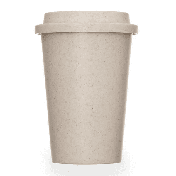 Copo em Fibra de Bambu / PP. Conta com tampa e abertura para beber o líquido. Capacidade: 450 ml