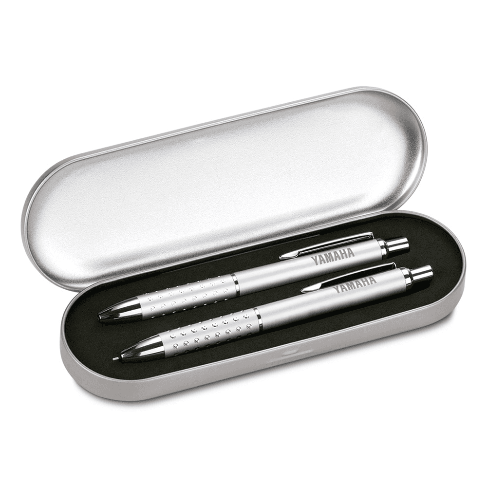 Estojo de metal para duas canetas.Interior em EVA preto.A personalização pode ser feito a laser ou impressão colorida digital UV.Obs.: Foto ilustrativa, não acompanha as canetas.
