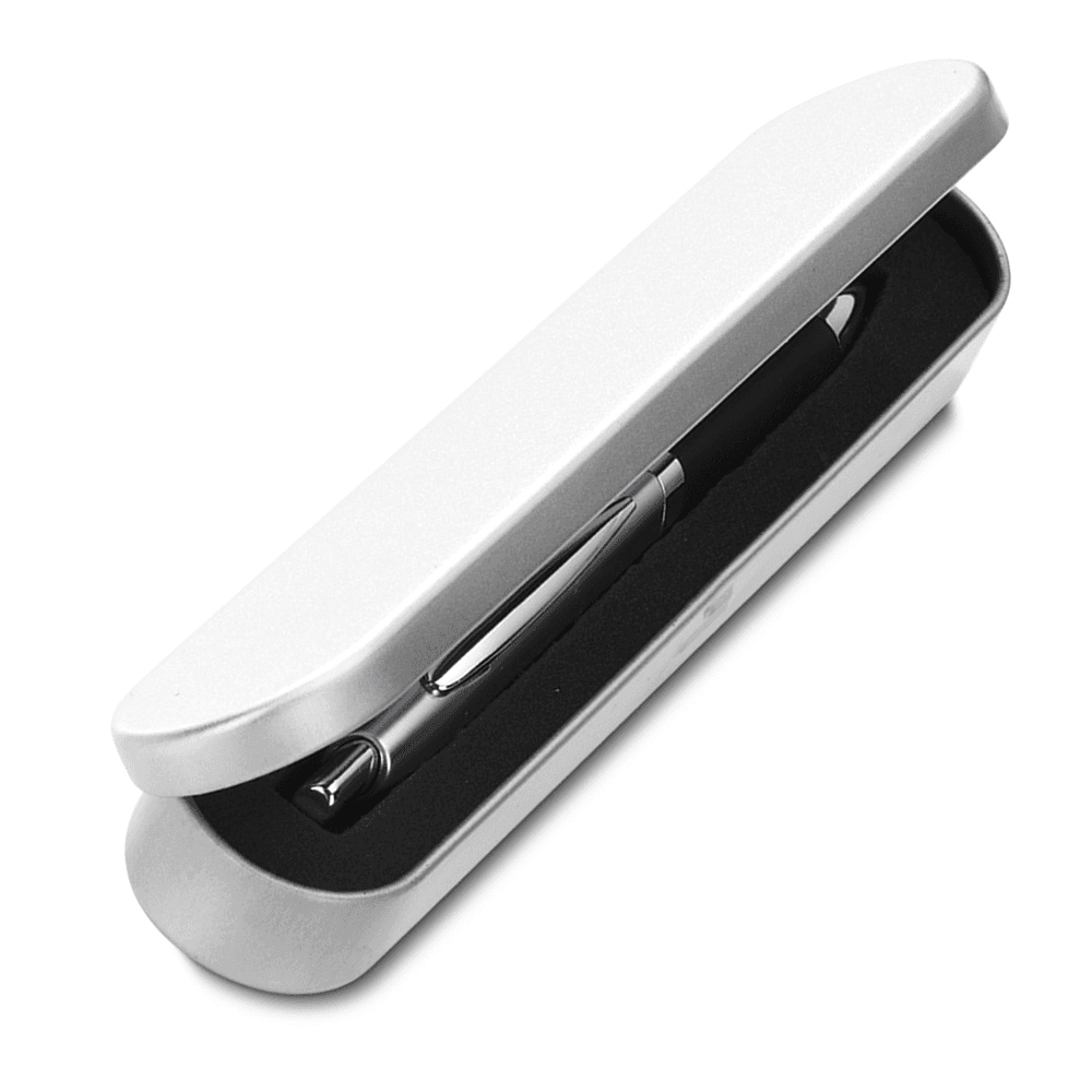 Estojo de metal para uma caneta Interior em EVA preto.