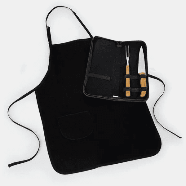 Kit Garfo, Faca Inox/Bambu Com Estojo E Avental - 4 Pçs PB-11113