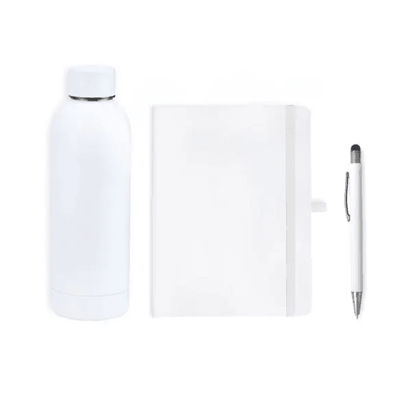 Modelo: Kit Garrafa, Caderno E Caneta - Branco - 3 Pçs KT-90357
