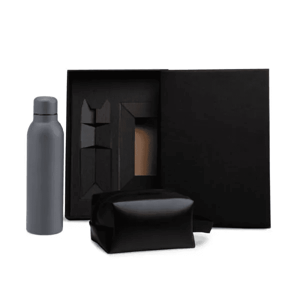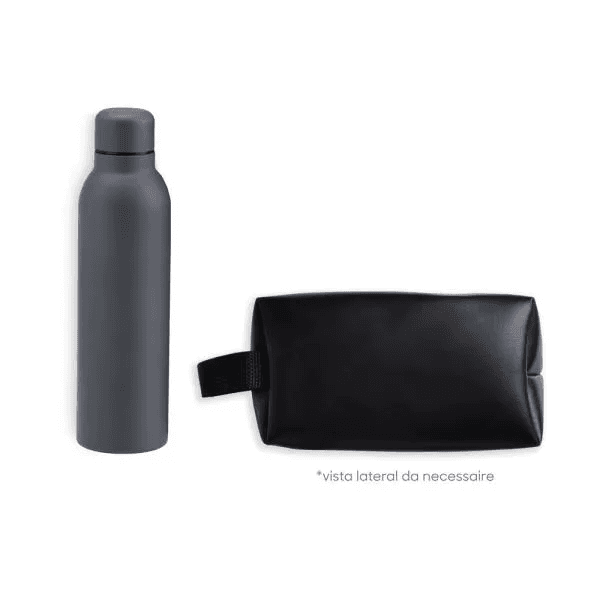 Kit Garrafa E Necessaire - Cinza/Preto - 2 Pçs KT-90364 - Brindes Caxias