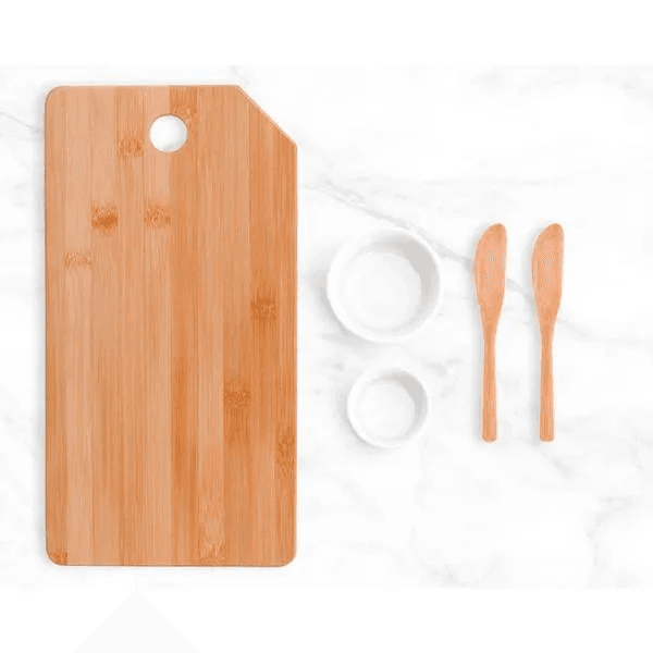 Kit Para Petisco Com Tábua, Espátulas E Ramekins - 5 Pçs KT-90120