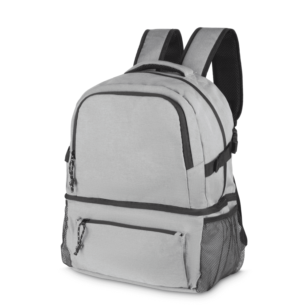 Mochila com compartimento térmico em tecido poliéster 300D e interior em PEVA.