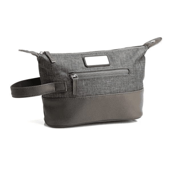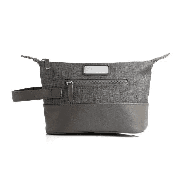 Necessaire Em Poliester 300D Com Detalhes Em Couro - Cinza MA-09122 - Brindes Caxias
