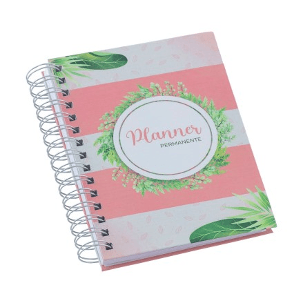 PLANNER FEMININO Capa Estampada Listrada Floral - MIOLO PLANNER - 2x2 Cores - 260 páginas - Off-set 63g - FORMATO 145X200mm