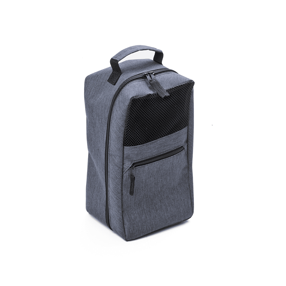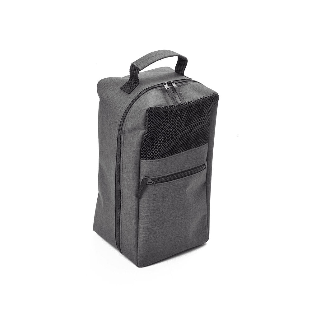 Porta Tênis em tecido poliéster 300D com bolso frontal e alça de mão.