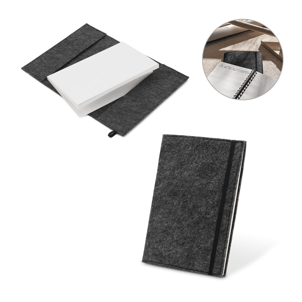 93636 BALDWIN. Caderno A5 com capa em feltro 100% reciclado, com 160 páginas pautadas recicladas