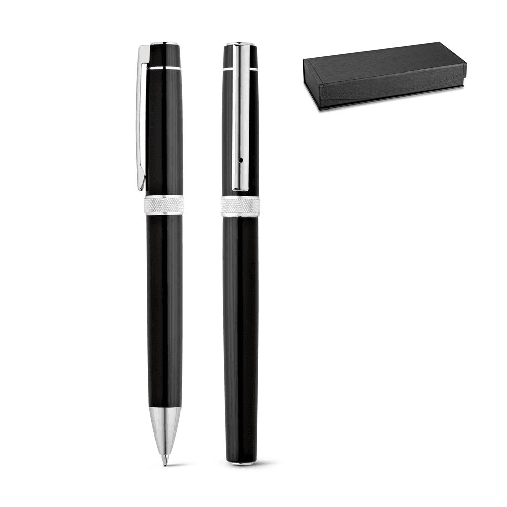 91816 DOURO. Conjunto de roller e esferográfica em metal com escrita em preto
