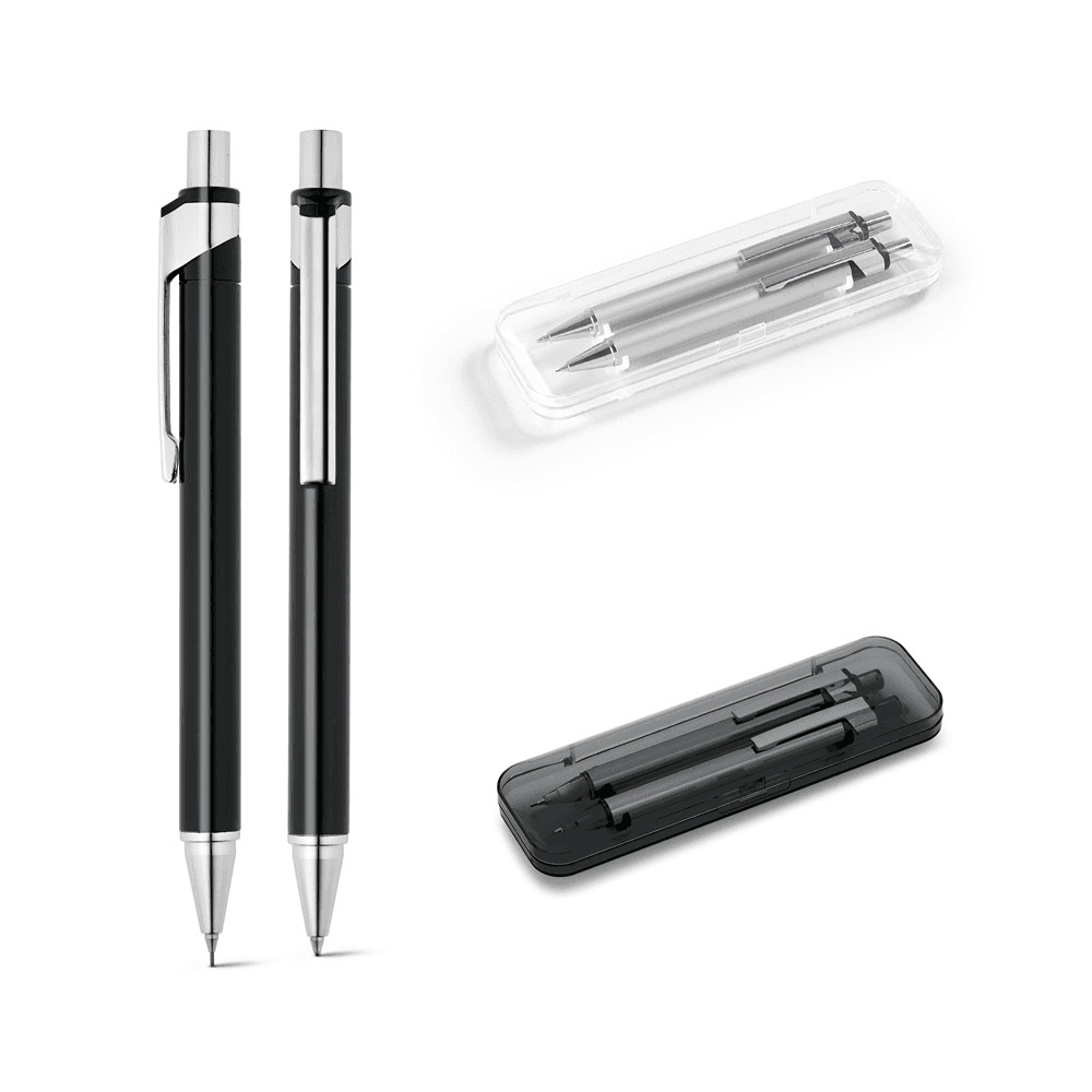 91834 PLOCK. Conjunto de esferográfica e lapiseira em alumínio com escrita em azul