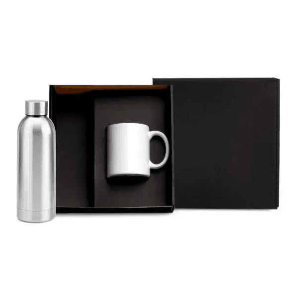 Kit Garrafa E Caneca - Prata/Branco 2 Pçs KT-90362