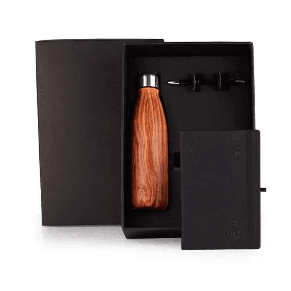 Kit Garrafa, Caderno E Caneta - Preto - 3 Pçs KT-90358