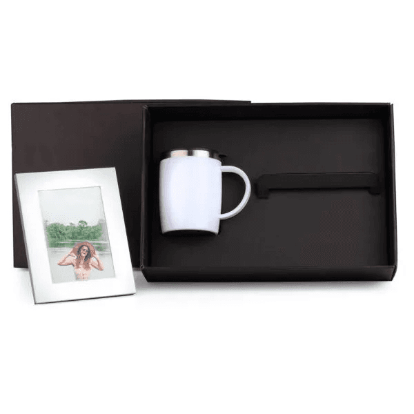 Kit Caneca Em Aço Inox E Porta-Retrato Em Alumínio - 2 Pçs KT-9046A