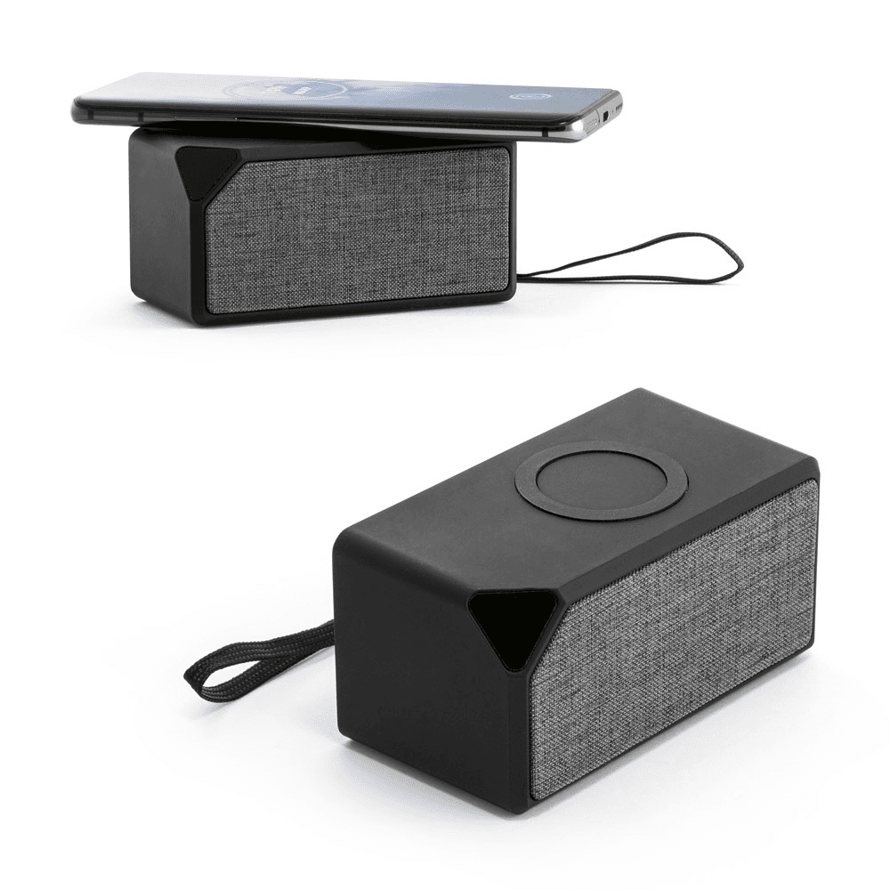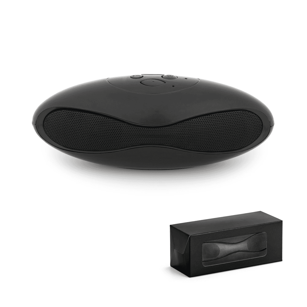 57933 GRUBBS BK. Caixa de som portátil em ABS com acabamento em borracha e tecido na parte frontal